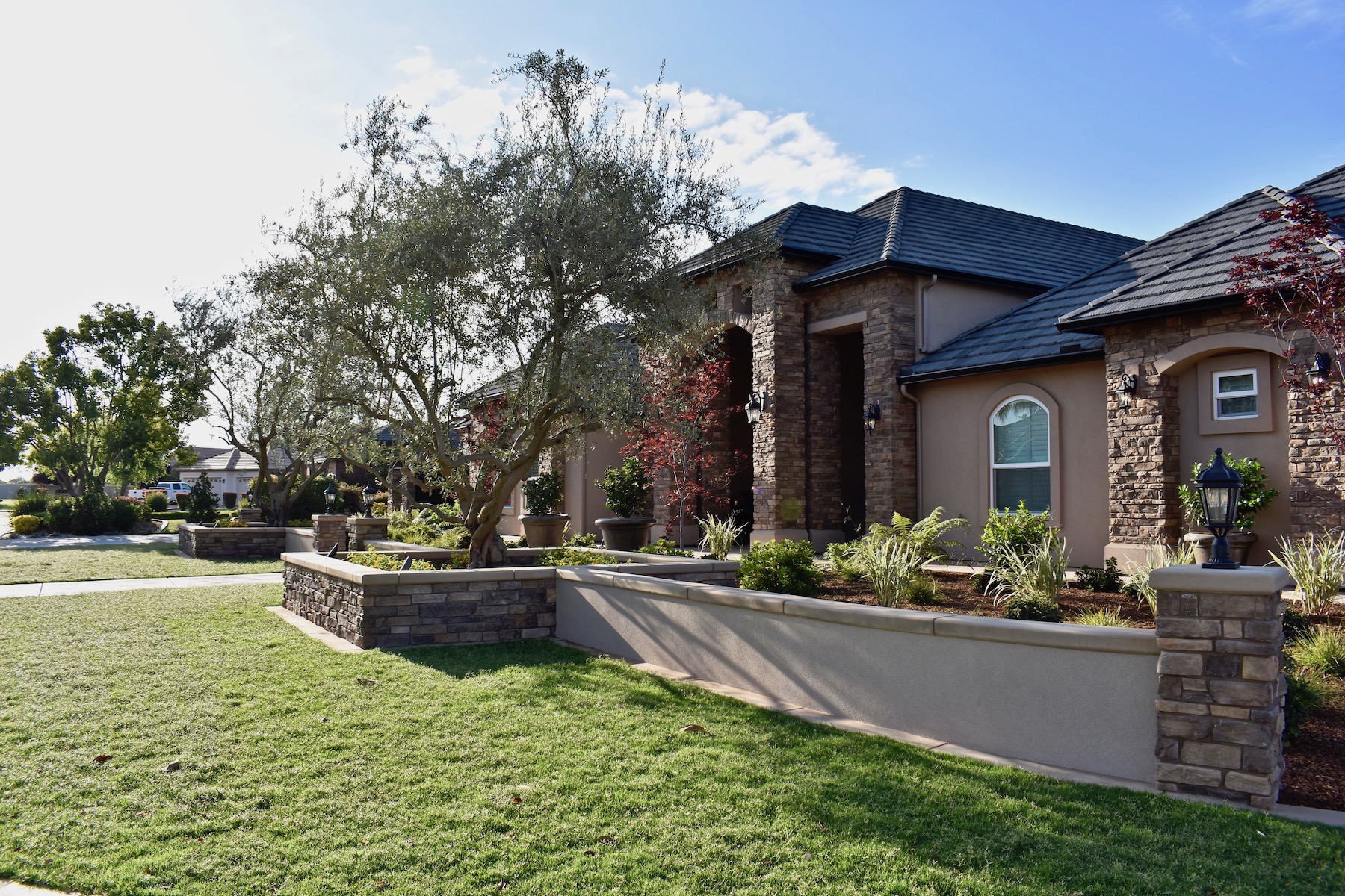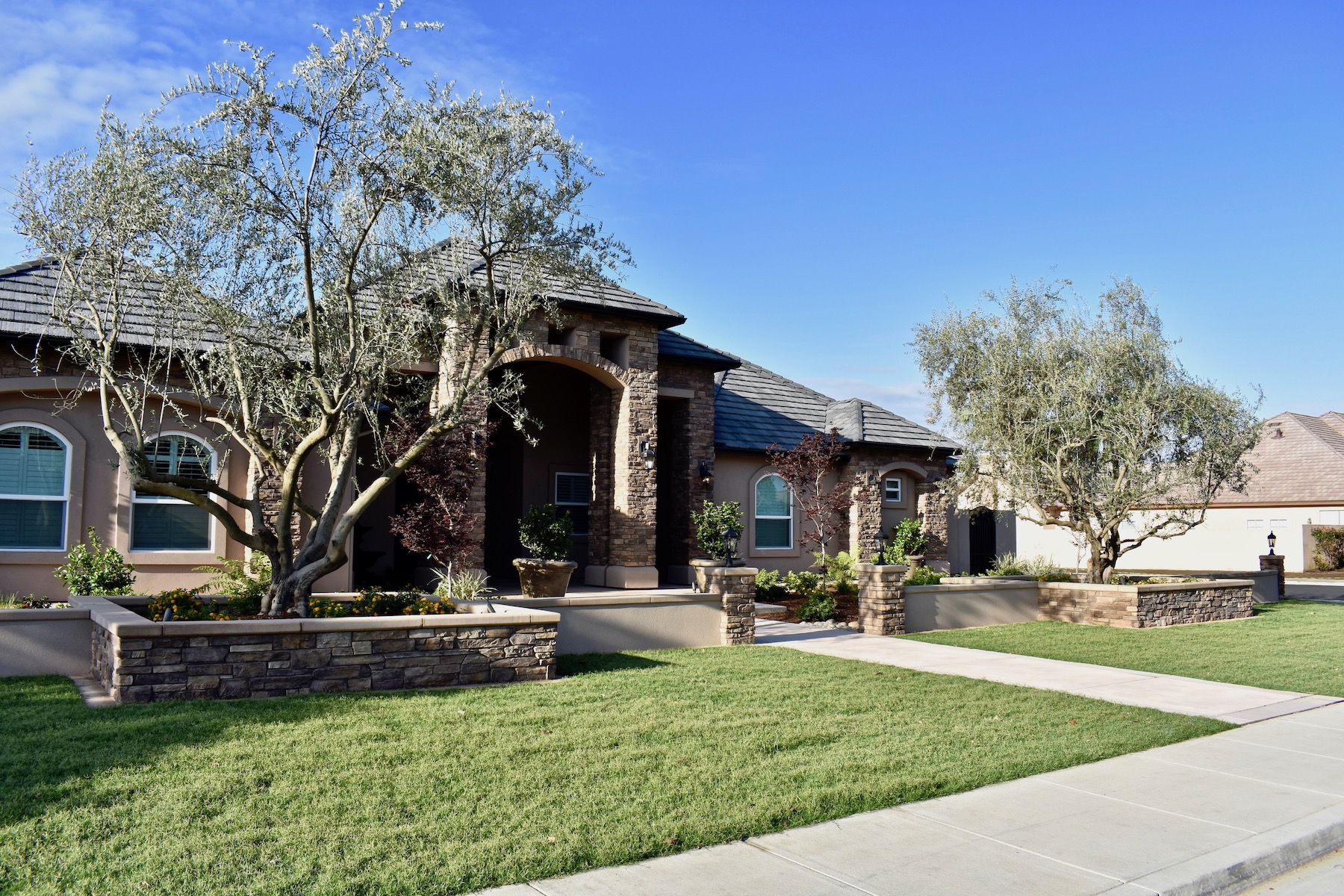 Our designers traveled to an Olive tree farm to hand-select the two Olive trees that were to be incorporated into the project. We felt strongly that due to the visual importance of these two trees, our designers had to be ones to select them from a field of hundreds. The trees were carefully pruned & dug to prepare for transport. Eventually, they made the long trip south to Bakersfield & our crews set the specimen trees in the large custom planters. Once these trees were set, the vision for the front yard was clearly coming together.