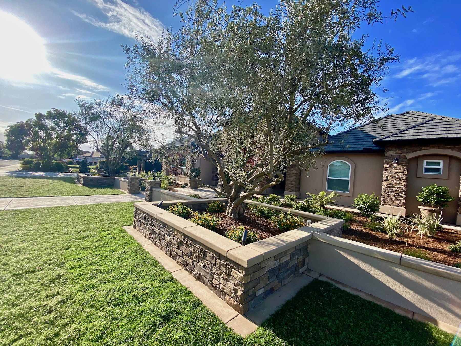 Next, we needed to decide what variety of tree would be best for the raised planters. These raised planters would be the main anchors to the front yard & therefore this selection was critical. We were looking for a few specific traits in the variety we chose. Specifically, we wanted a tree species that offered beautiful branching, was available in size & scale that would fit the home, & lastly our clients wanted an evergreen species of tree. After much deliberation & conversation, we all agreed that field-grown Olive tree was the best selection.