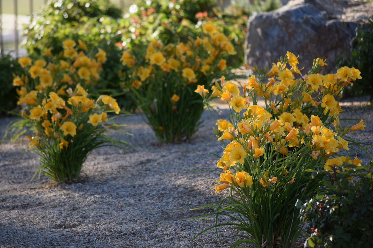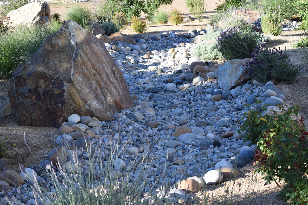 Our park landscape design would of course not be complete without a dramatic change to the planting palette. We added a number of specimen Virginiana Oaks, Eldarica Pines, & Ginkgo Biloba trees. We also added pops of color with landscape roses, day lilies, hydrangeas, & ornamental grasses. Now the park landscape is filled with splashes of red, yellow, pink, & white. This palette helped to beautifully blend this massive property addition into the surrounding landscape. In order to further reduce maintenance, we used tan decomposed granite as our mulching for our beds. This gave our planters a rich, natural color tone & will help to abate weeds in our planters.